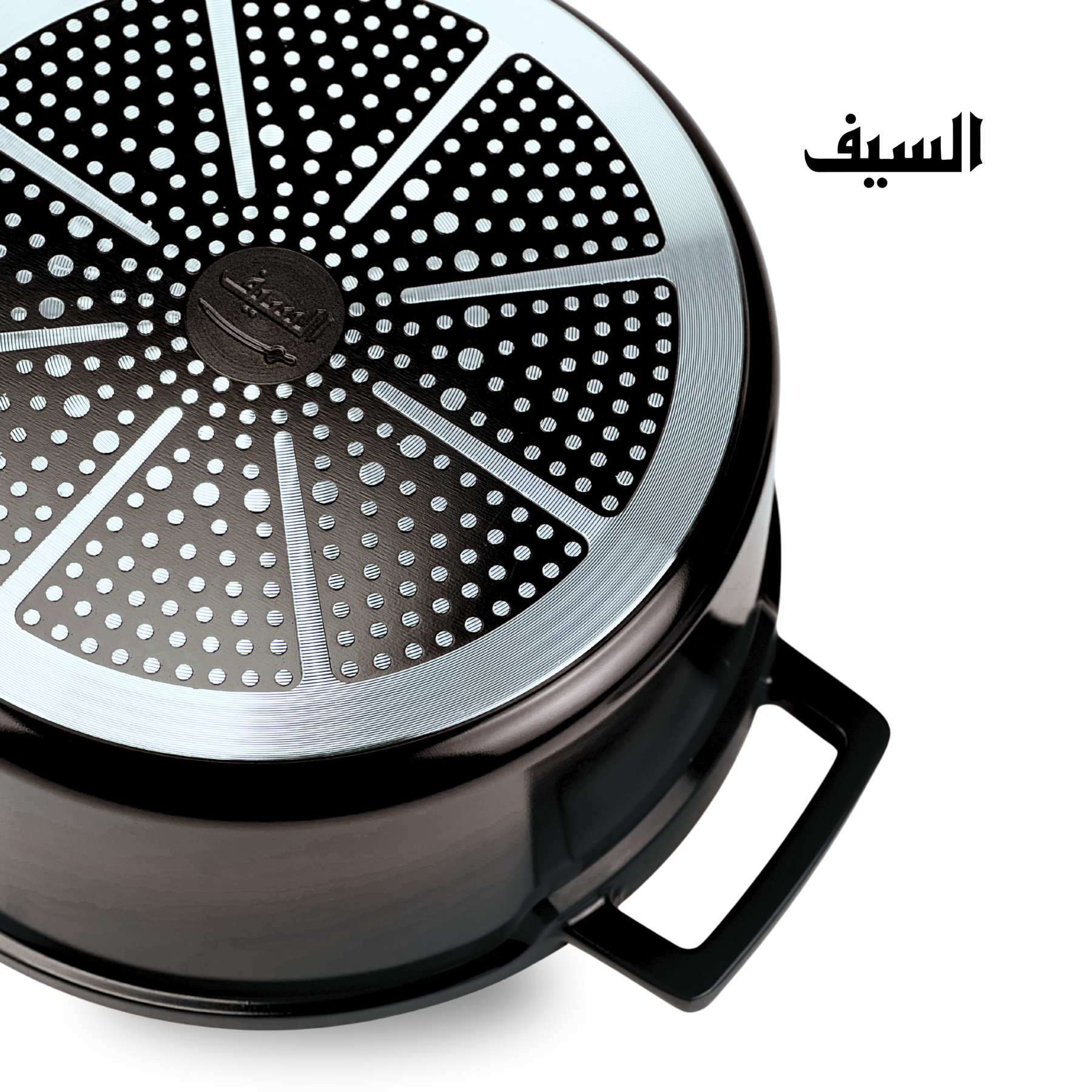 المصممة لدمج الأداء العالي مع الراحة اليومية. مصنوعة من الألمنيوم المصبوب الفاخر، تضمن توزيعًا سريعًا ومتساويًا للحرارة للحصول على وجبات مطبوخة بشكل مثالي دون احتراق أو نتائج غير متساوية.