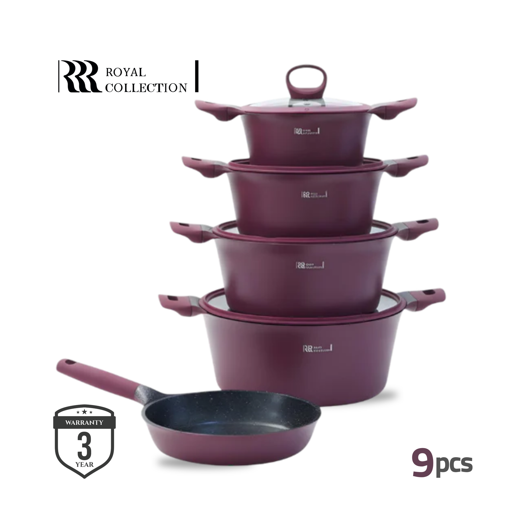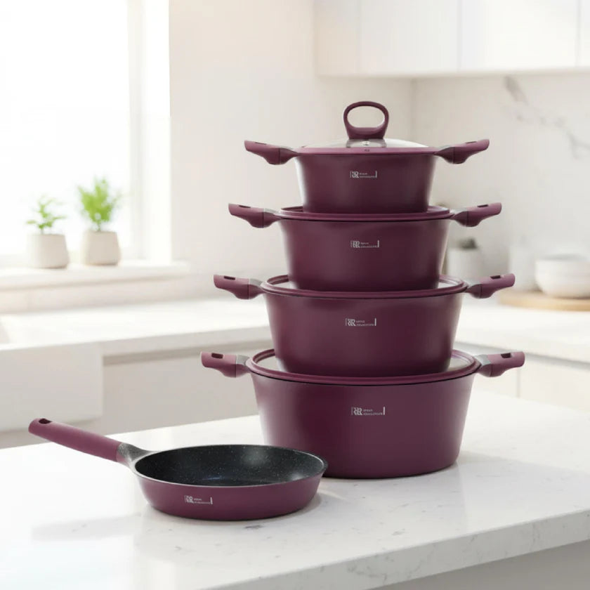 مجموعة أواني الطهي من الجرانيت الملكي 9 قطع | الطراز الشمالي | بورغندي