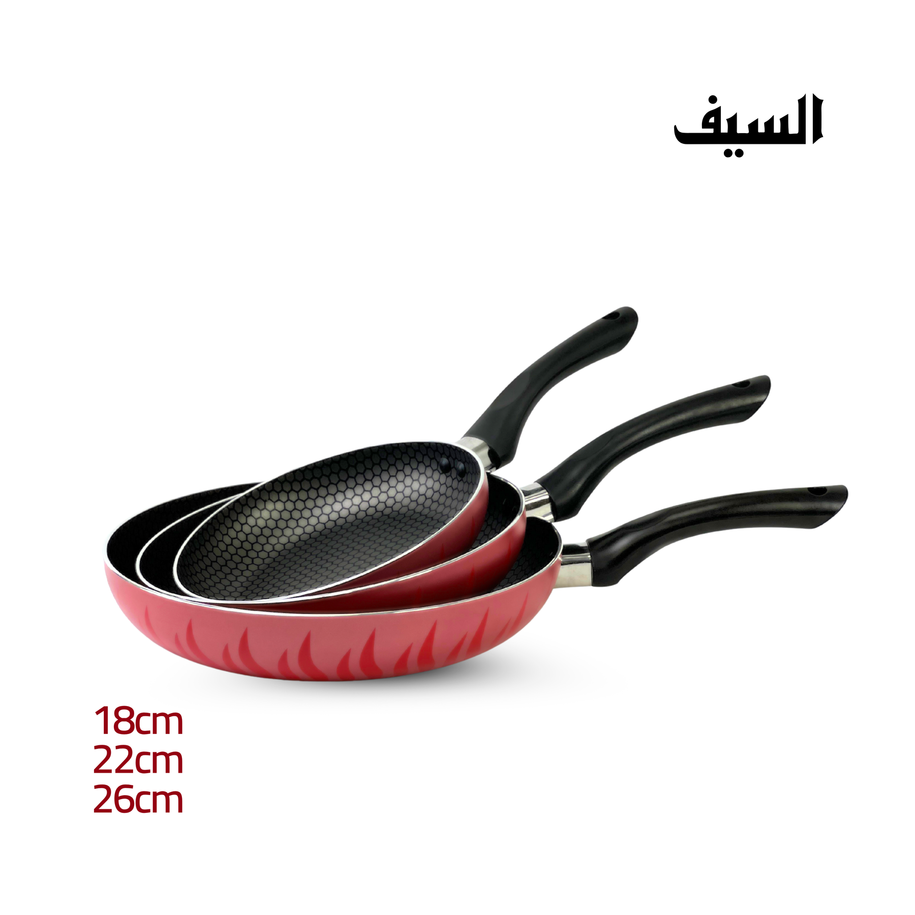 طقم مقالي الشعلة غير اللاصقة من السيف | الأحجام 26 / 22 / 18 سم