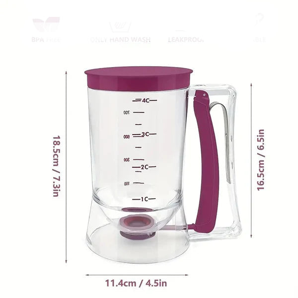 اجعل الخبز أسهل وأنظف مع موزع العجين اليدوي (900 مل)، المصمم للتحكم المثالي في الحصص عند تحضير الفطائر، الكب كيك، الوافل، والمزيد.