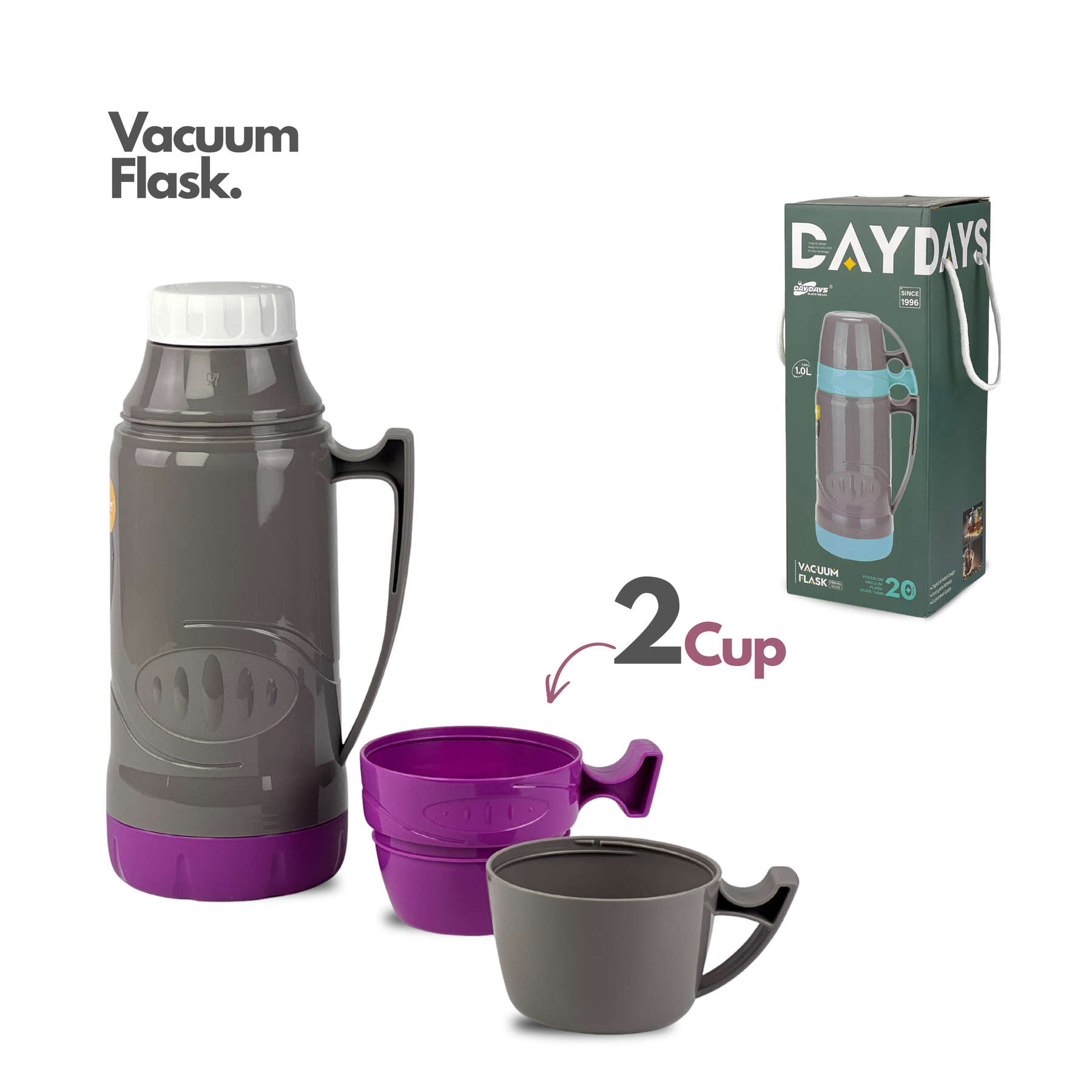 ترموس حافظ للحرارة مع كوبين | حجم كبير 1 لتر | ألوان متعددة