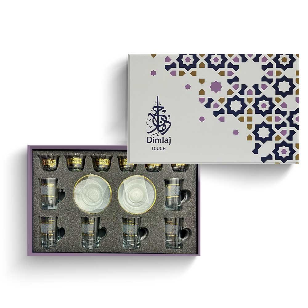 طقم ضيافة زجاجية 18 قطعة ذهبية Dimlaj Mirror