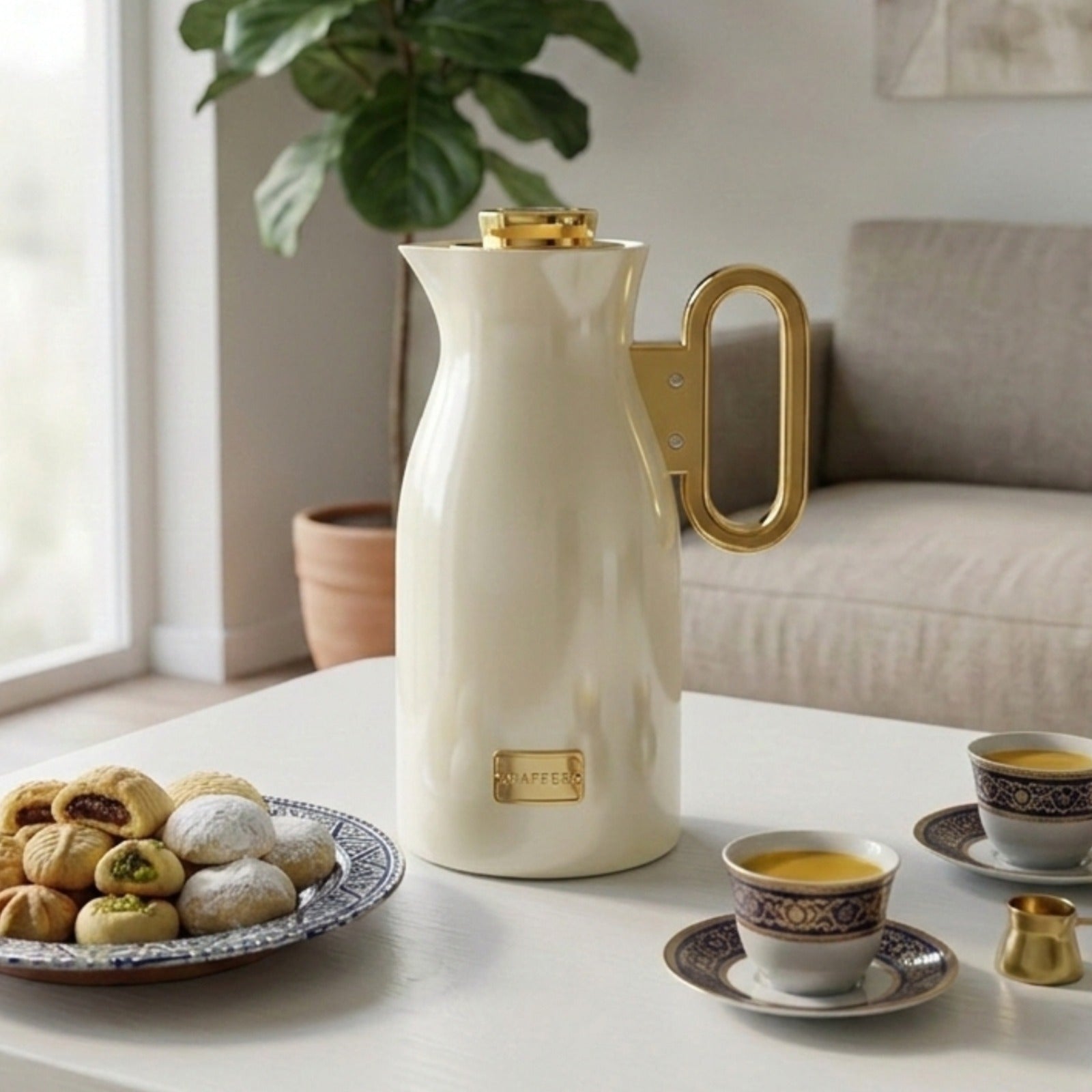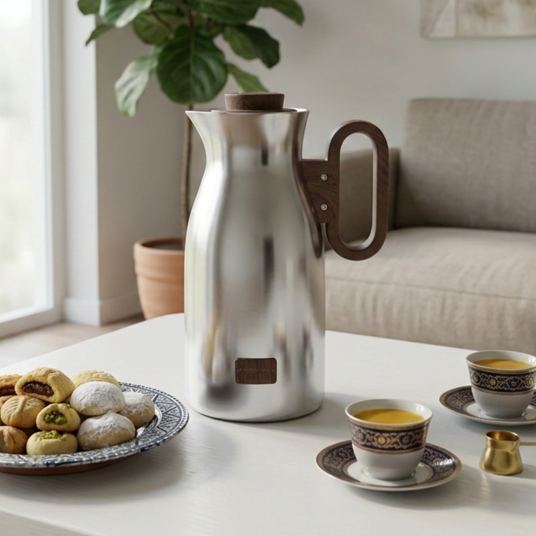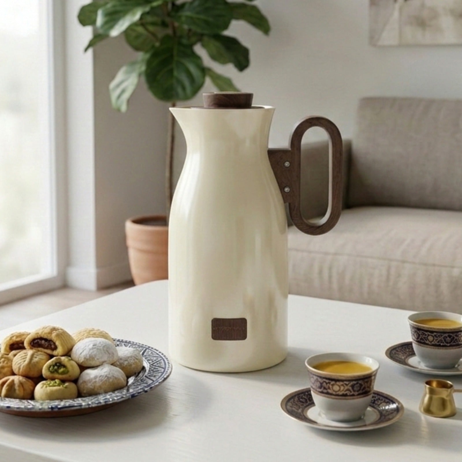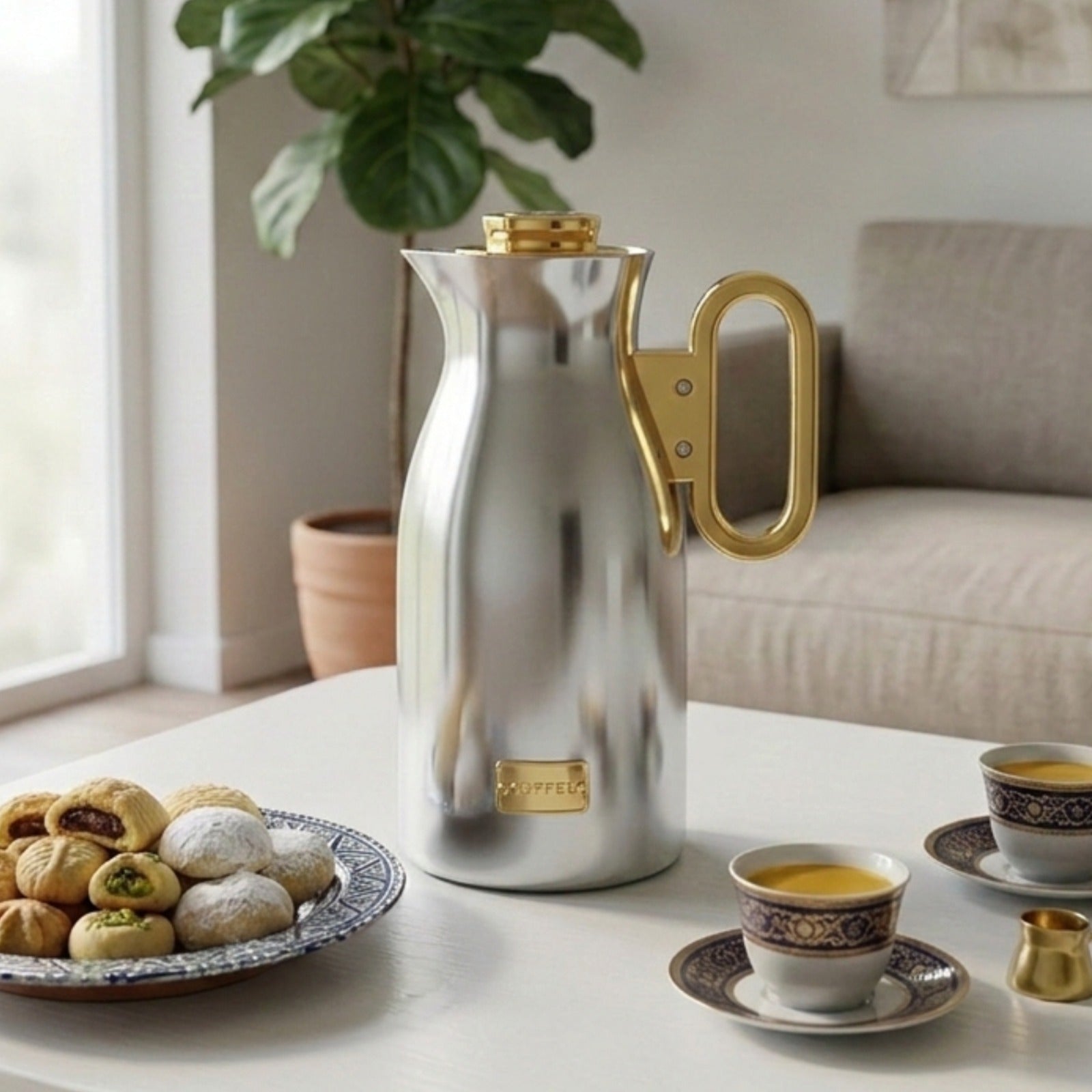 غلاية قهوة معزولة – 1 لتر تجمع بين التصميم الأنيق والأداء العالي، مما يجعلها مثالية لتقديم القهوة العربية أو الشاي للاستخدام اليومي أو المناسبات الخاصة.