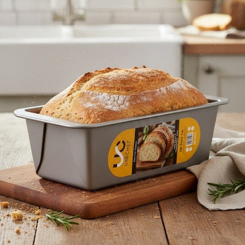 قالب خبز مستطيل عميق من Uni Chef مع سطح غير لاصق من التيتانيوم يضمن تحرير الطعام بسهولة وتنظيف سهل. مثالي لخبز الخبز، كعك الرغيف، وغيرها من المخبوزات. متوفر بأحجام متعددة: 21 سم، 23.5 سم، و34 سم. متين وعملي، يضمن هذا البان خبزًا متساويًا ونتائج احترافية في كل مرة.