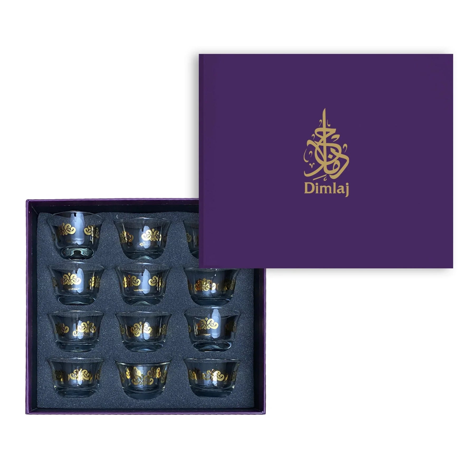 طقم أكواب زجاج 12 قطعة ذهبية Dimlaj Florid