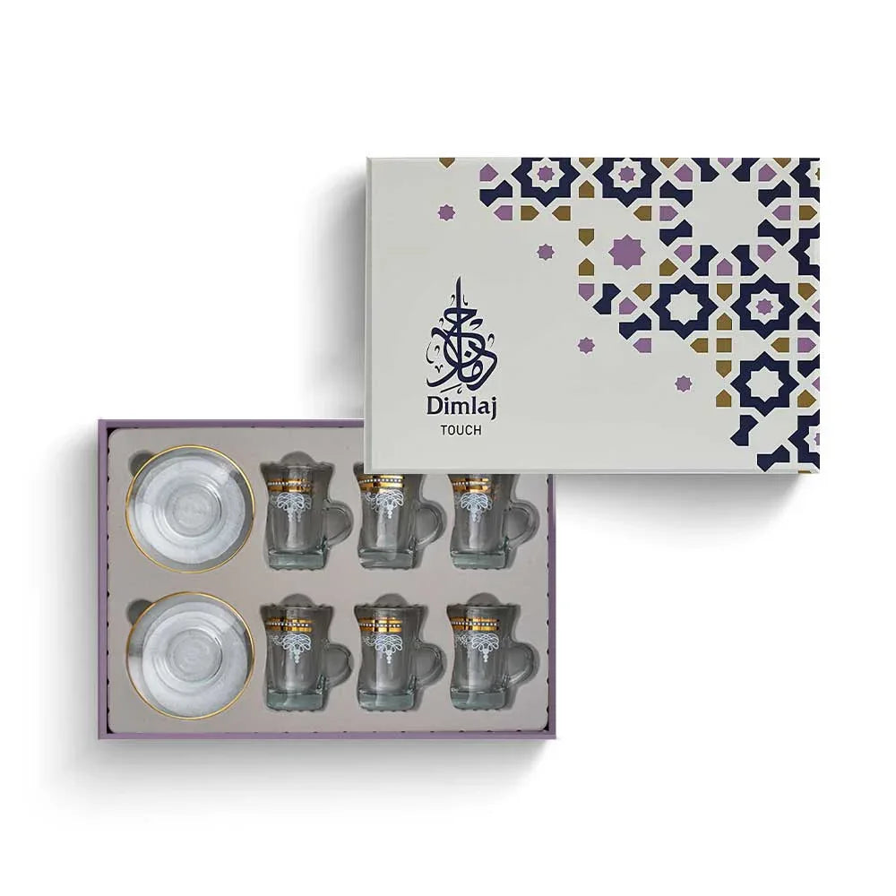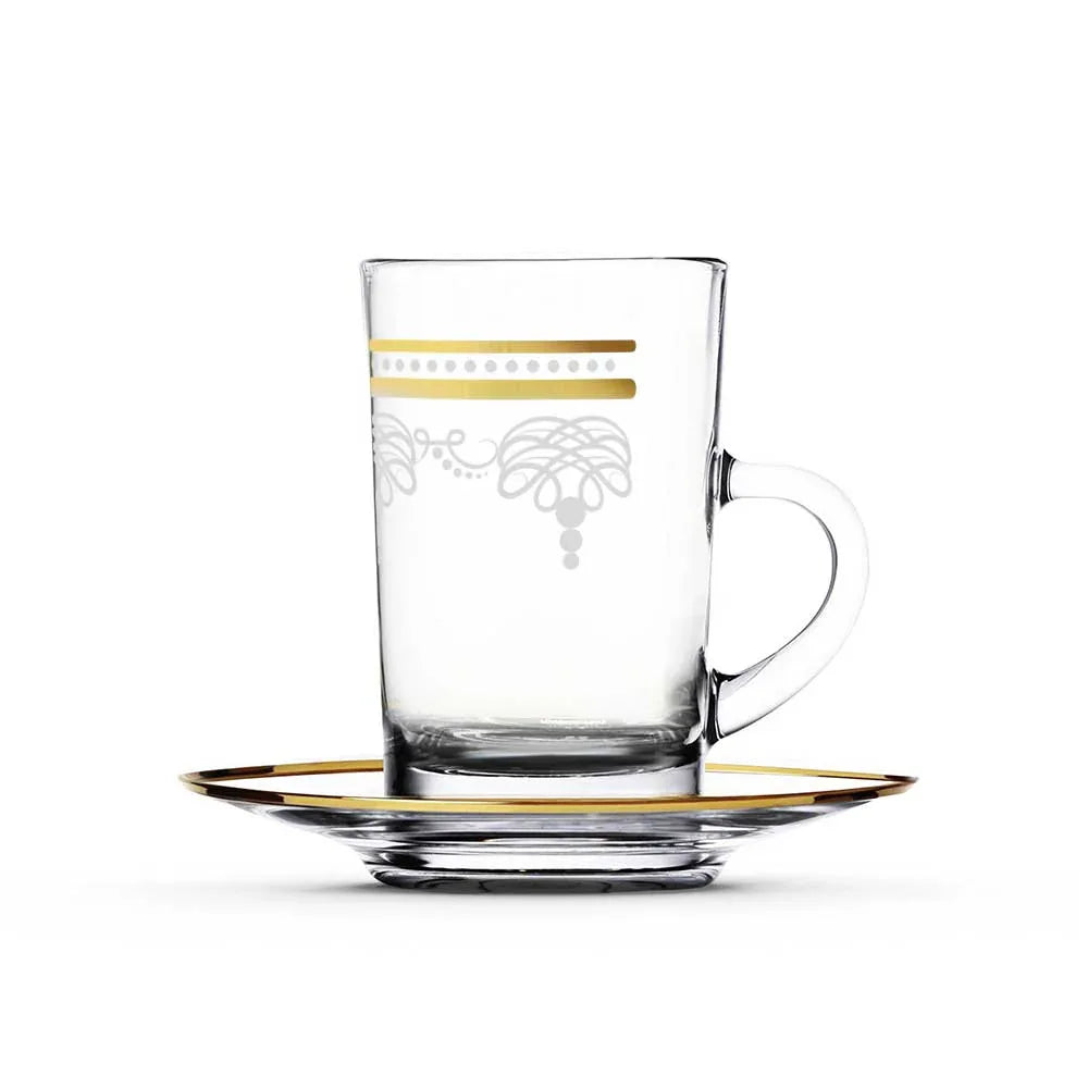 طقم أكواب شاي زجاجية مع 12 قطعة ذهبية Dimlaj Elixir