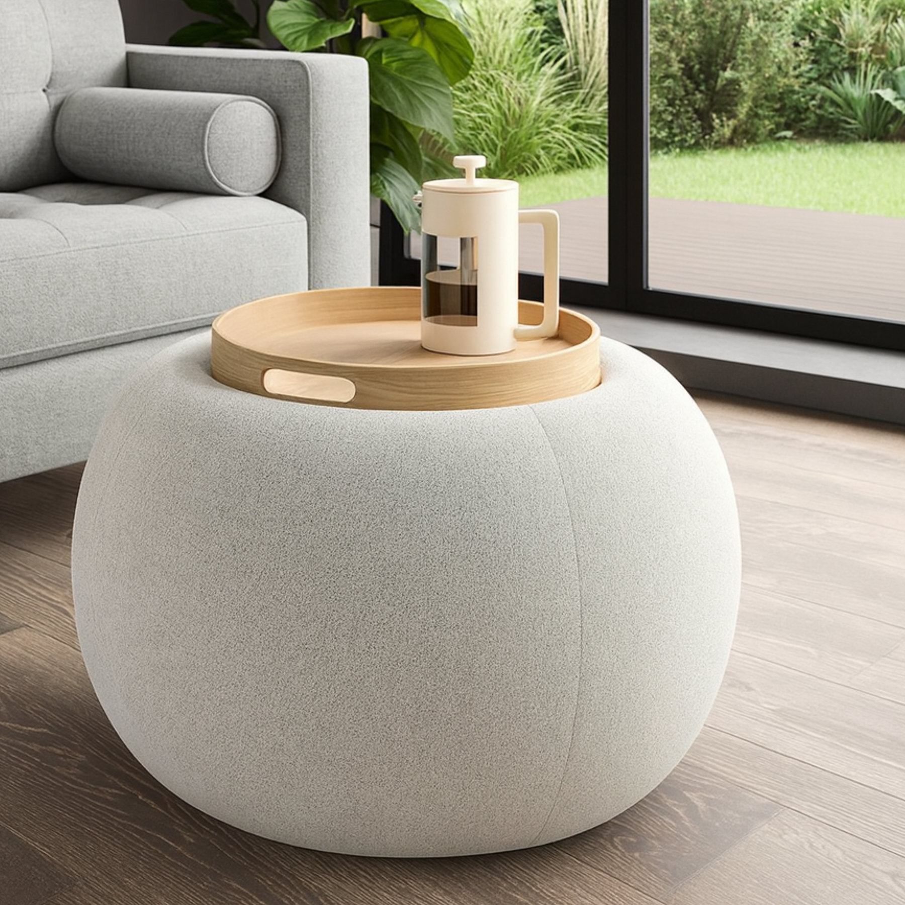 أضف لمسة من الأناقة والعملية إلى منزلك مع هذه البفّه القماشية المصممة بذكاء. تأتي بغطاء يمكن قلبه ليُستخدم كصينية أو طاولة صغيرة، مما يجعلها قطعة مثالية لغرفة الجلوس أو غرف النوم.
