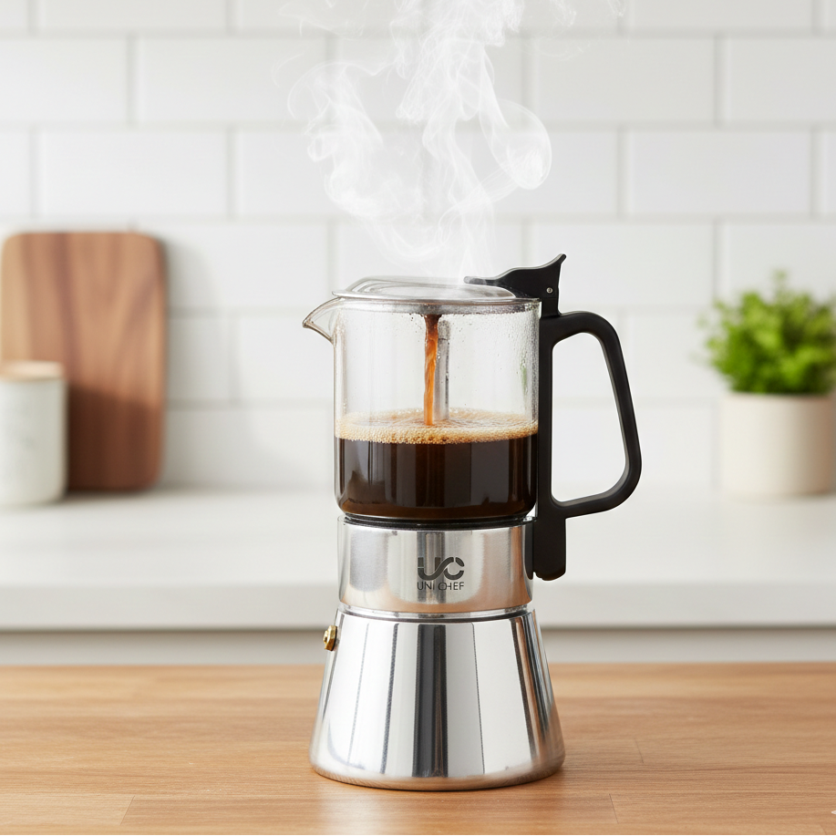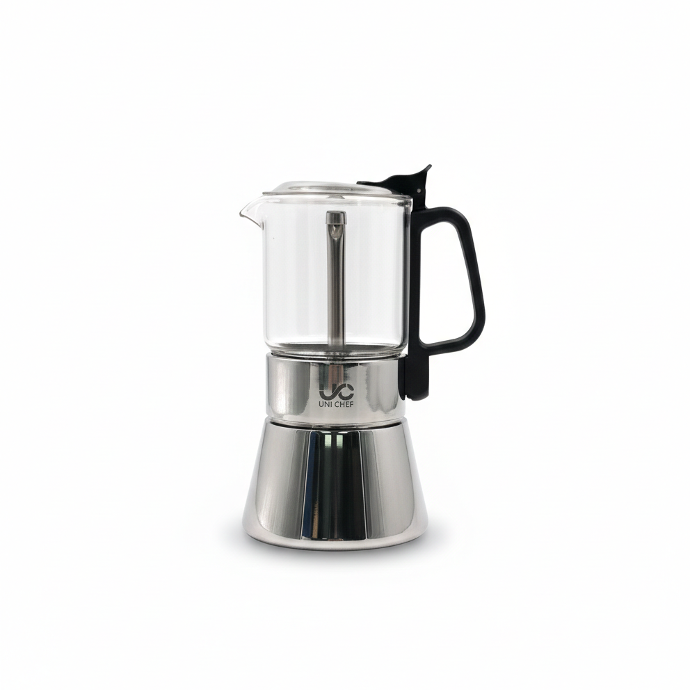 قم بتحضير قهوة غنية وعطرية مع موكا بوت – 160 مل. يتميز هذا الإناء الأنيق من موكا بجسم متين من الستانلس ستيل ومقبض مقاوم للحرارة لسهولة التعامل. مصمم للاستخدام على الموقد، يقدم قهوة على طراز الإسبريسو بسرعة وكفاءة.