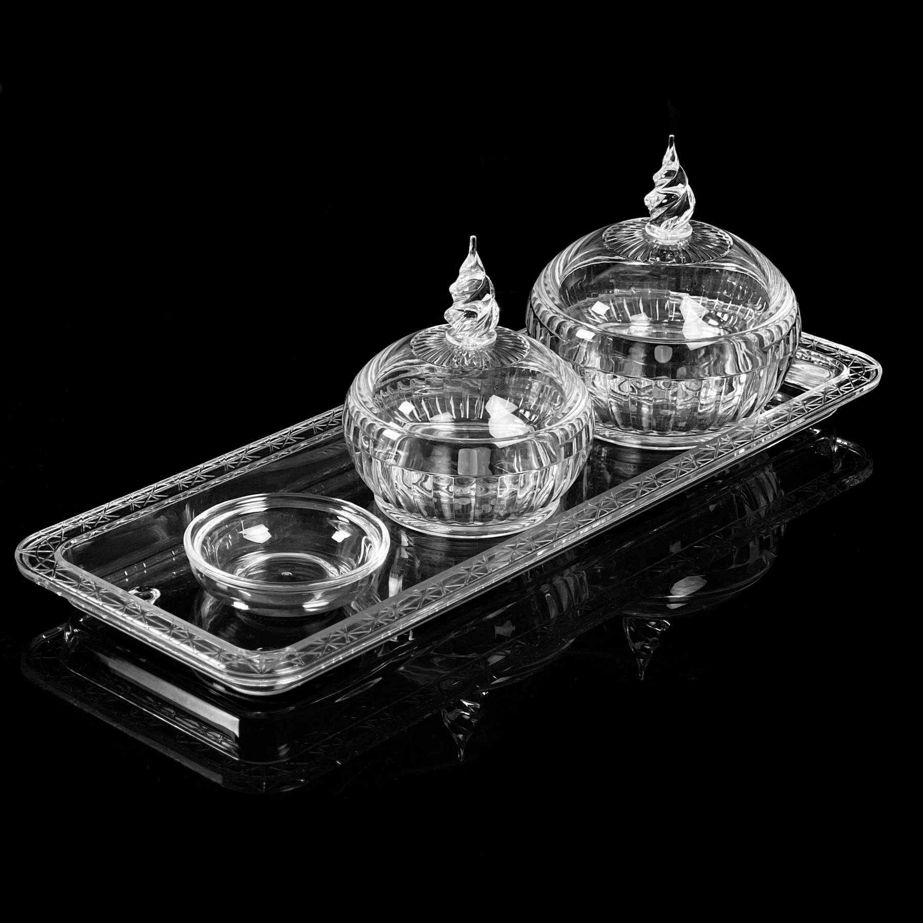 تميّز ضيافتك في جميع الأوقات مع مجموعة المضيفين الأكريليكية هذه التي تتكون من صينية مع وعائين للتمر وطبق صغير لبذور التمر، مصممة بعناية مع تفاصيل أنيقة تلتقط الأنظار.