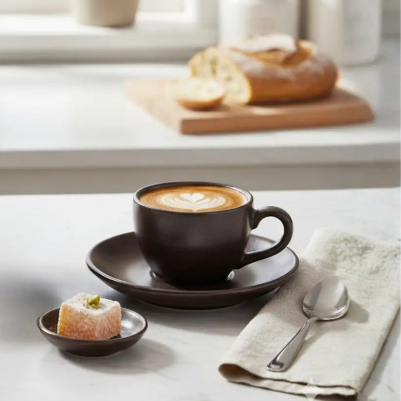 Porceletta Rustic Black Reactive Glaze Porcelain Cup & Saucer