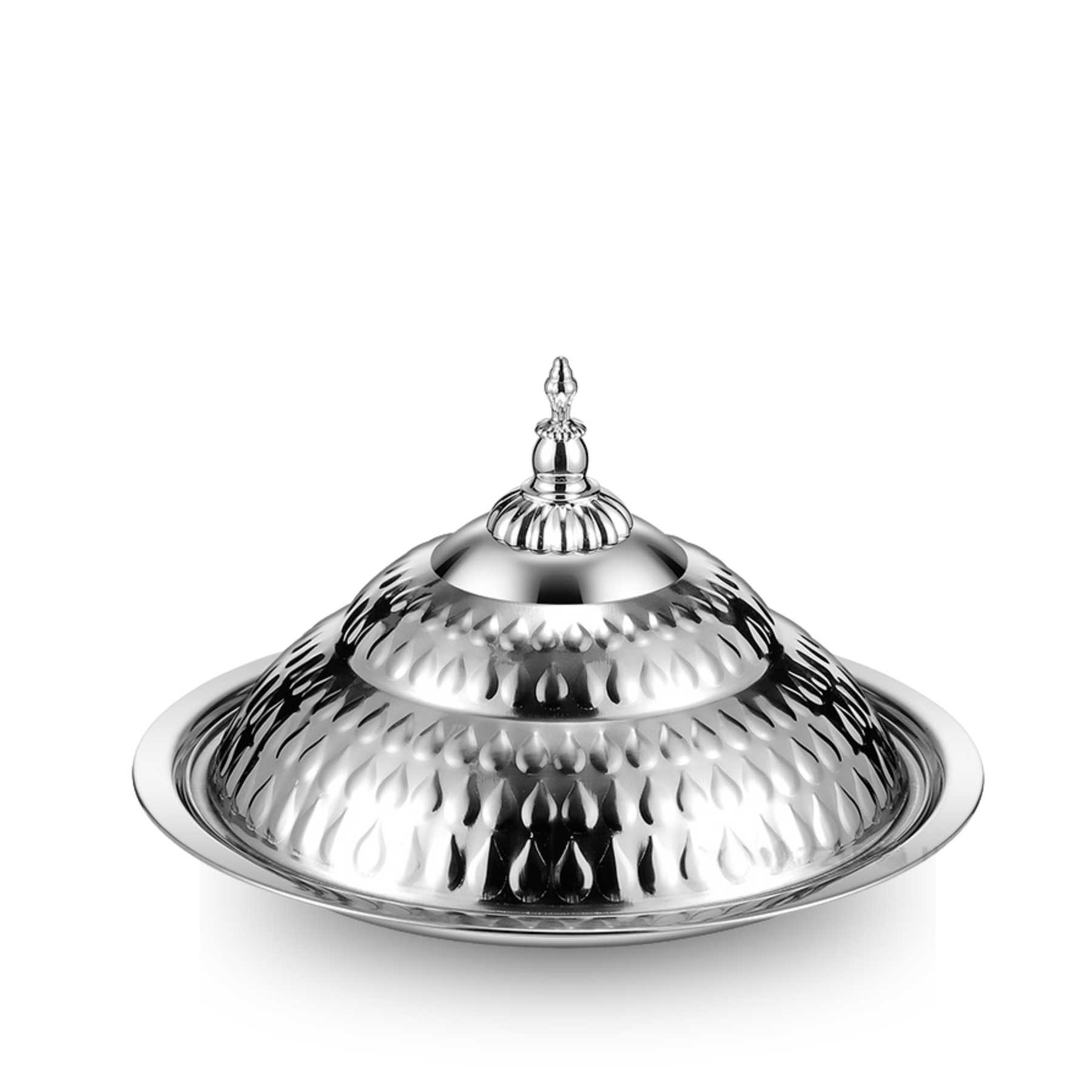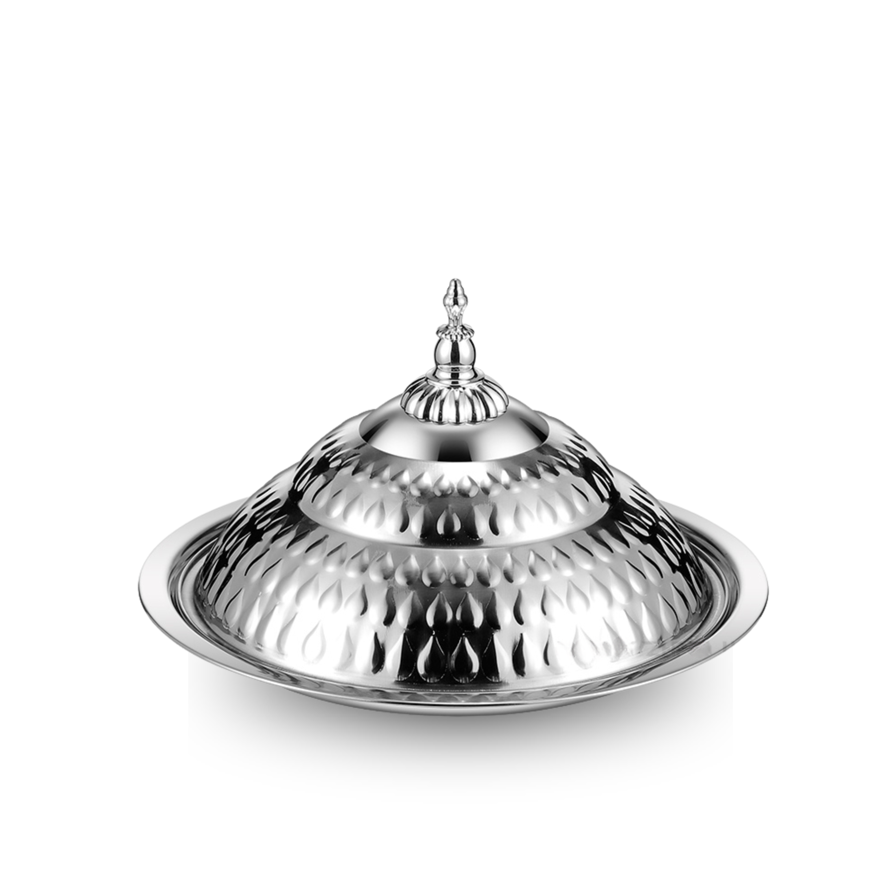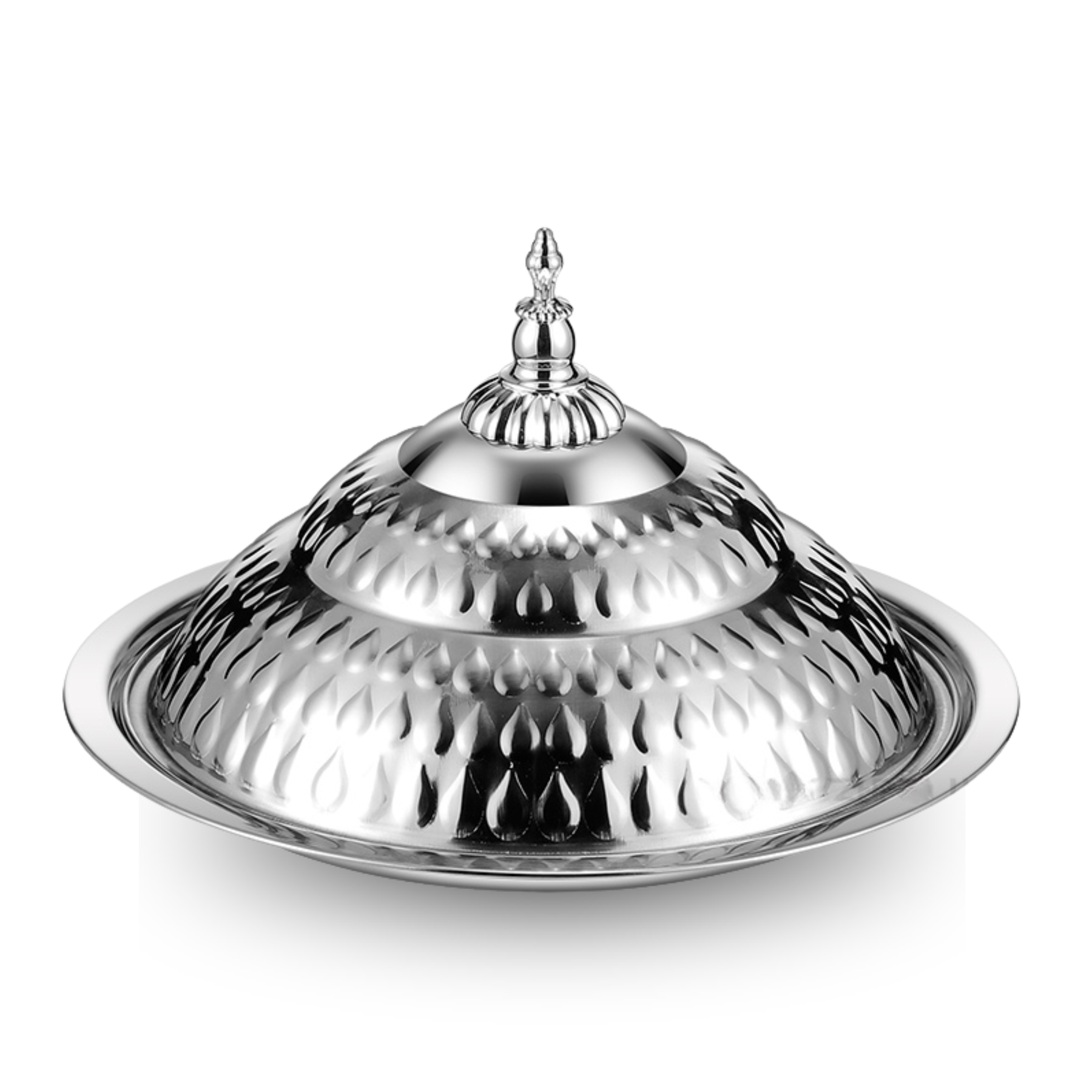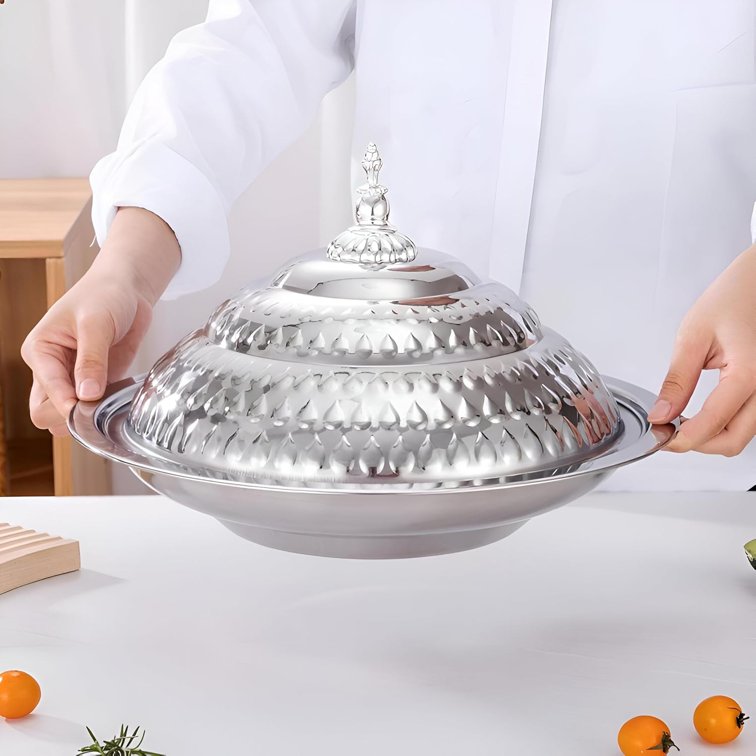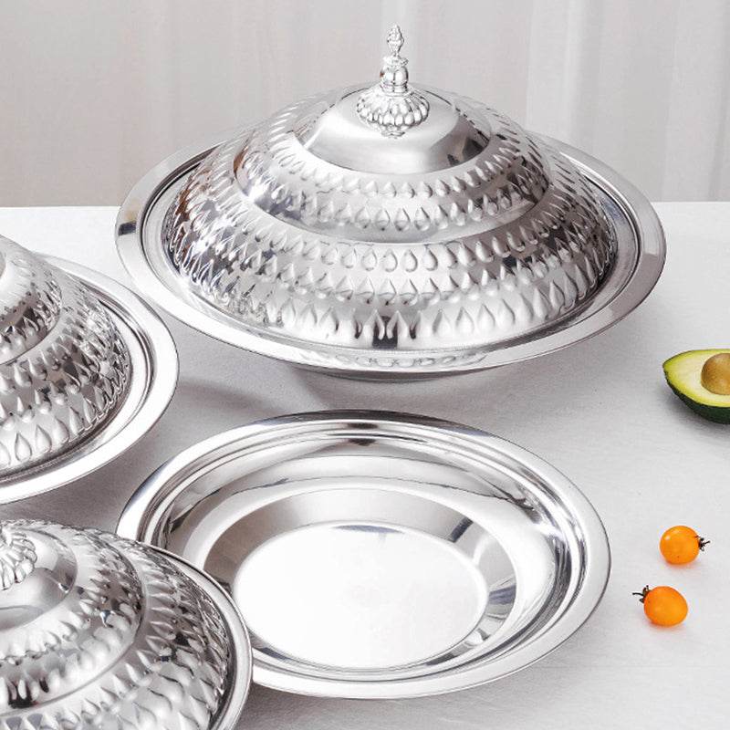 Elegant stainless steel serving trays with domed lids, perfect for presenting traditional dishes like Mandi, Kabsa, or other main courses. Durable, easy to clean, and ideal for both home and restaurant use. Keeps food warm while offering a stylish presentation for any occasion.