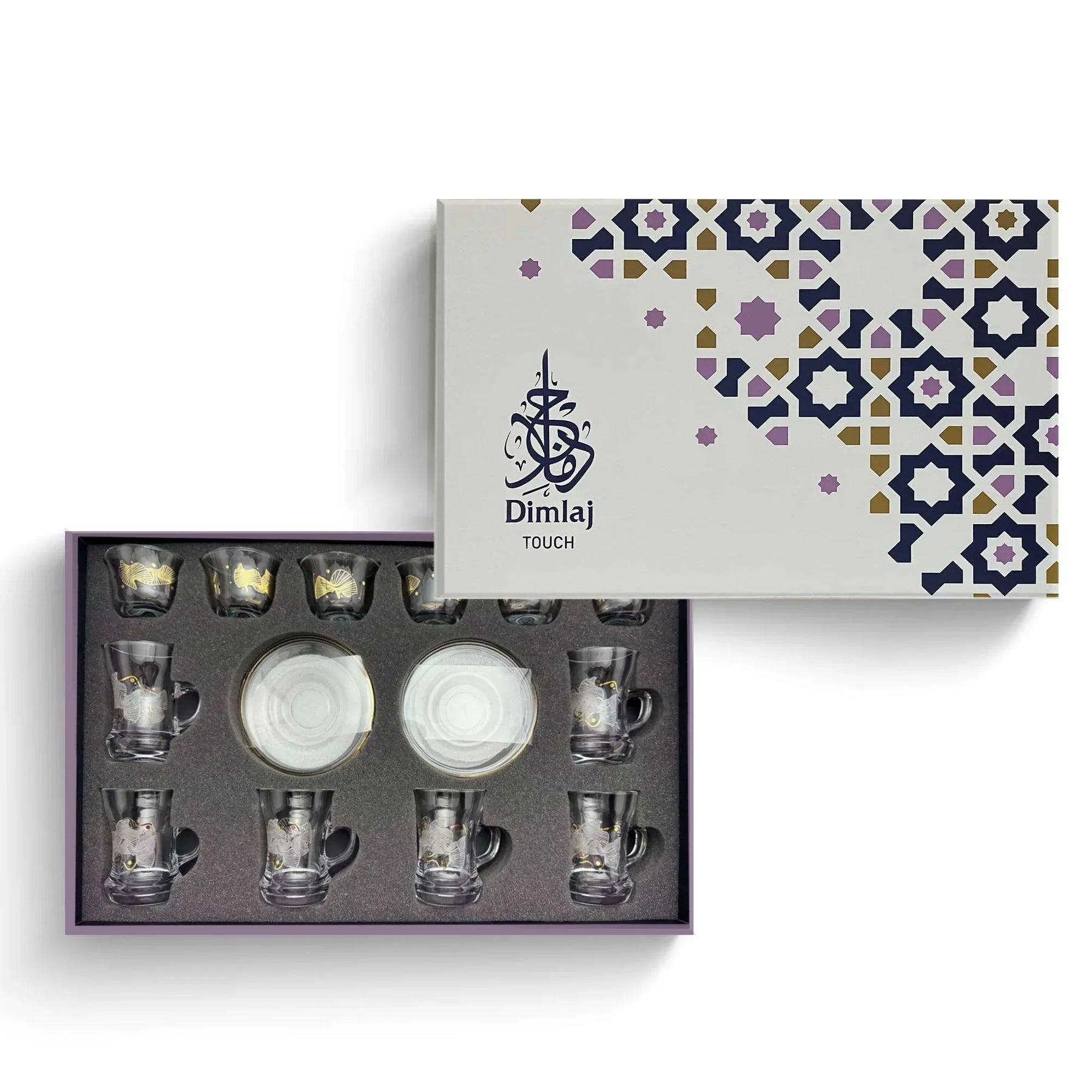 Brand: Dimlaj Touch Collection: Sky Precious Materials: Gold No. of Pcs: 6 pcs Material: Glass Packing Type: Luxury Gift Box Weight