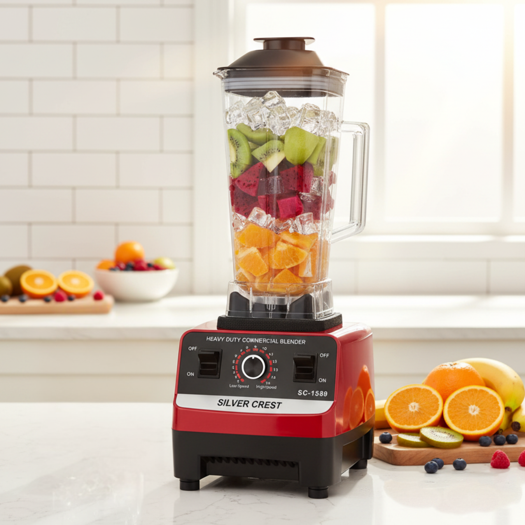 A powerful multifunction blender designed for making smoothies, juices, crushing ice, and grinding nuts or grains with ease. It features a high-performance motor typically ranging between 4500W and 5000W, delivering fast and efficient blending results.
