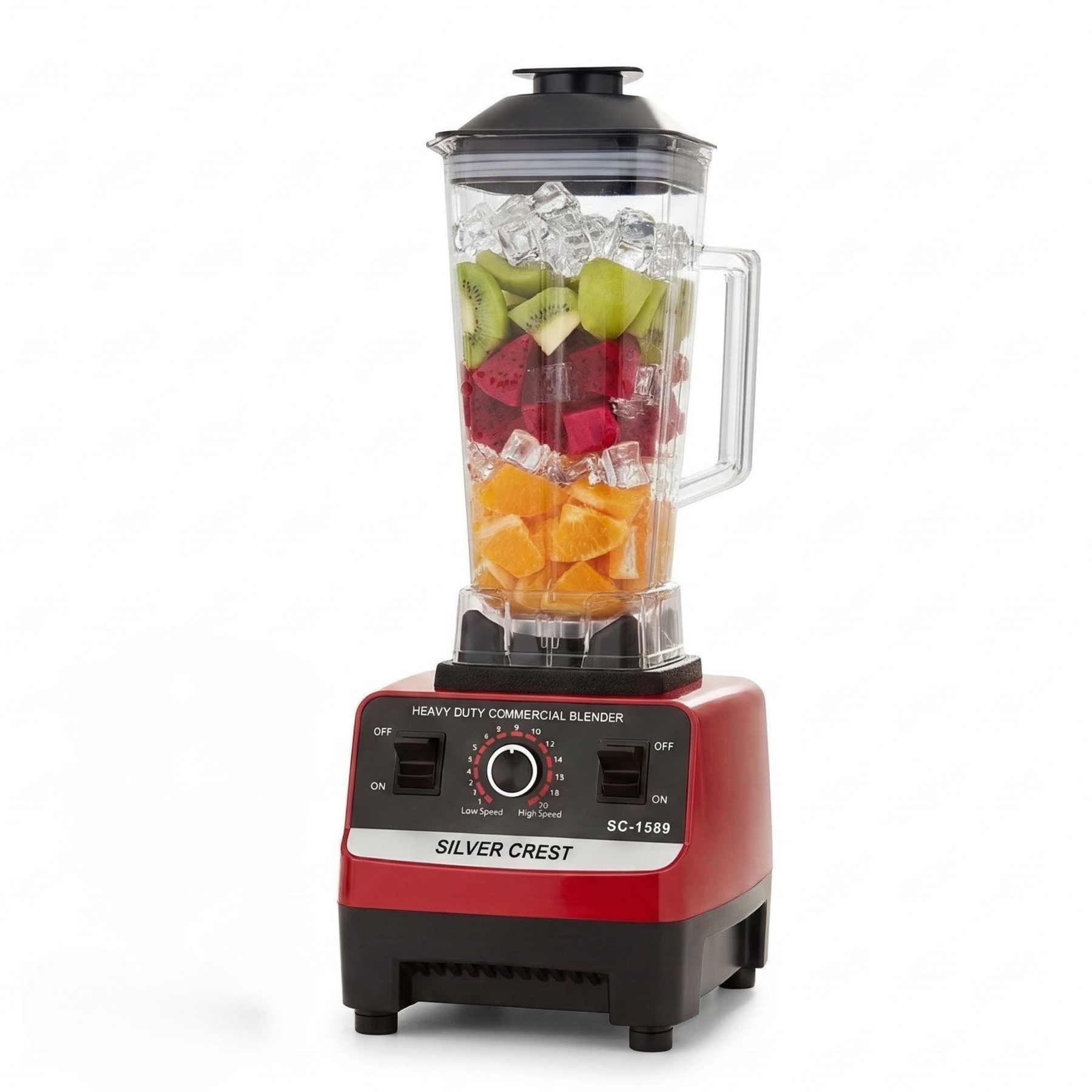 The blender comes with a large 2-liter capacity jar, making it ideal for preparing family-sized portions. It also includes adjustable speed control to handle different blending tasks such as fruit blending, smoothie preparation, ice crushing, and nut grinding.