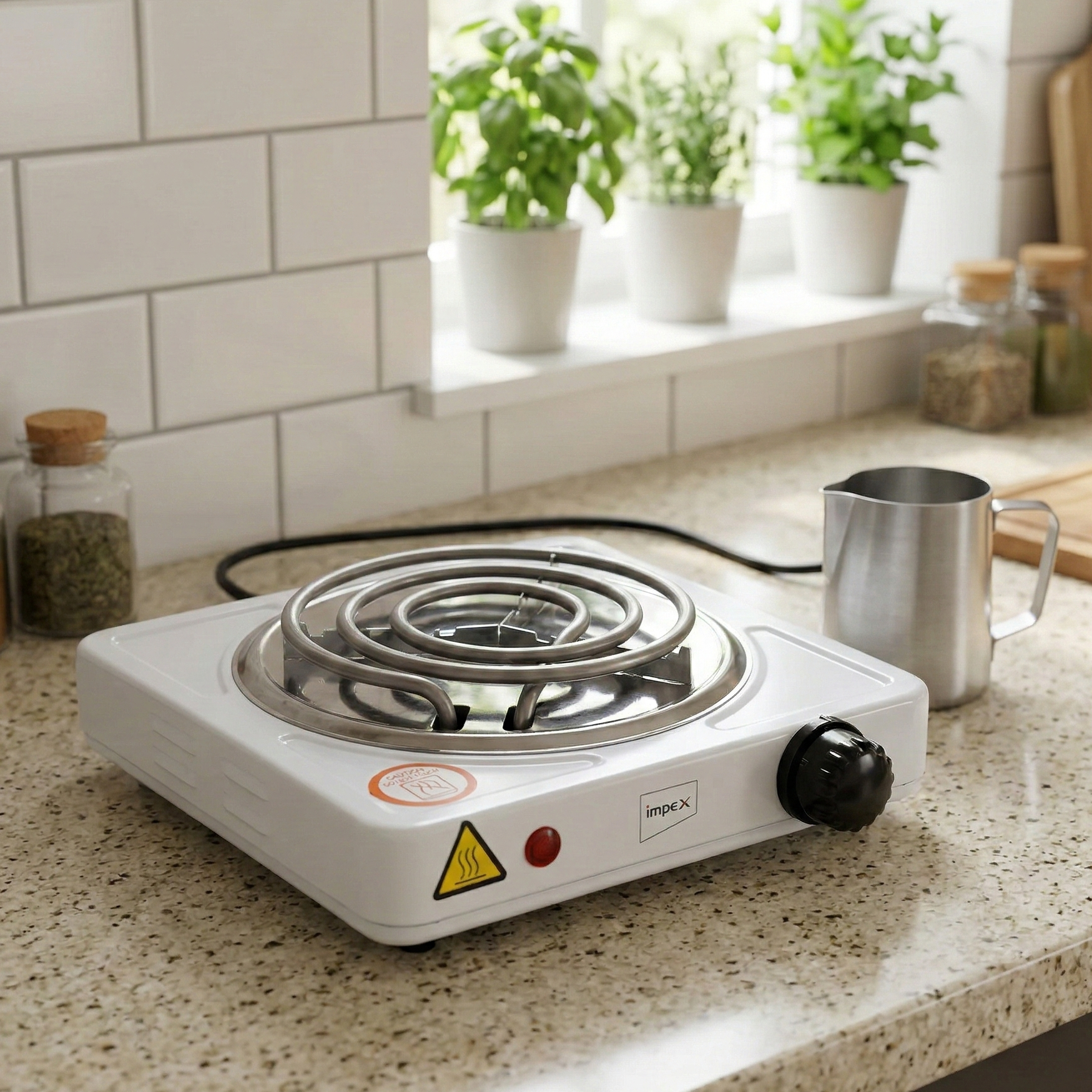 A practical cooking solution for small kitchens, dorm rooms, offices, and camping trips. This 1000W portable electric hot plate provides fast and efficient heating with a single coil burner compatible with most cookware.