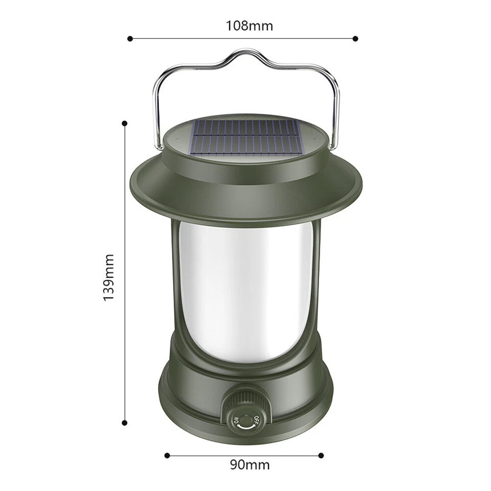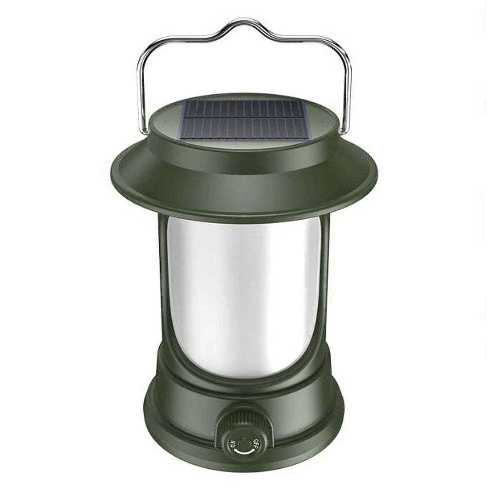 A portable solar-powered lighting flashlight designed for camping and emergency use. It combines practical performance with a classic design, providing reliable and powerful illumination in various conditions.