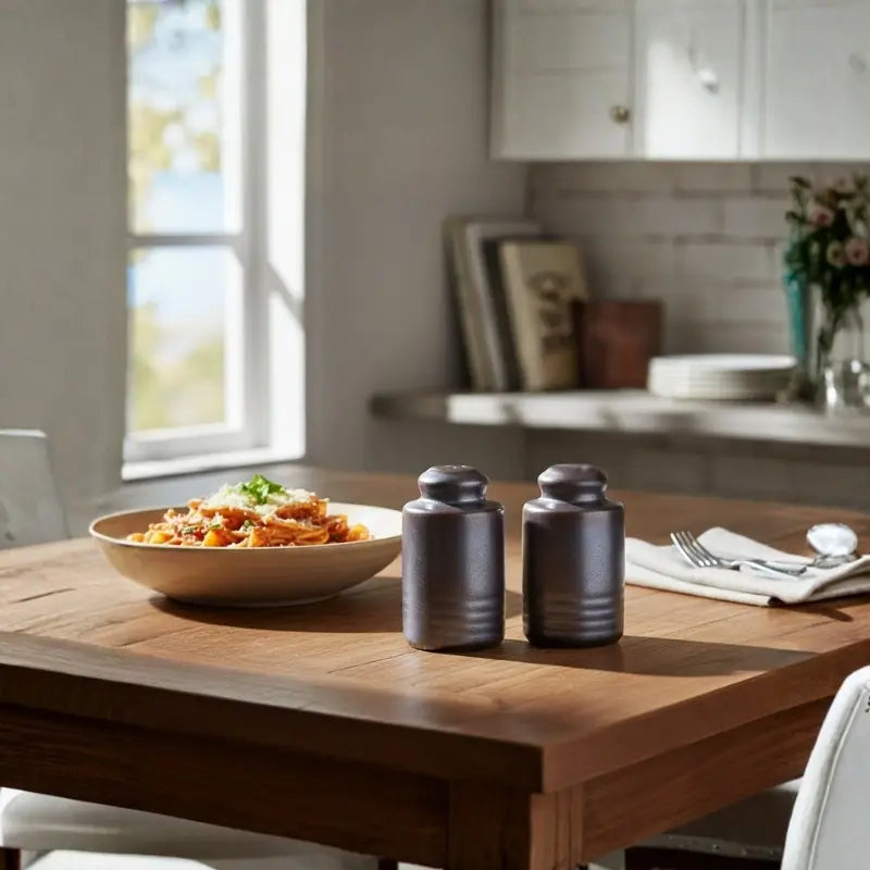 Add a touch of elegance to your table with the Porceletta black porcelain salt and pepper set. A modern design that combines style and functionality, making seasoning presentation more distinctive. Perfect for everyday use and special occasions.